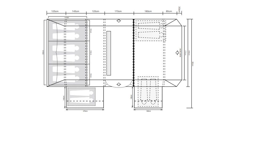 - Fully sewn-in groundsheet in the living space, and the front porch extension, giving twin living spaces.