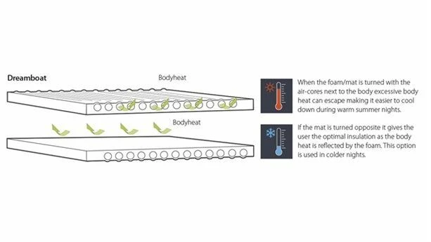 The Outwell Dreamboat Double 7.5cm is a self inflating mat that offers superb comfort and quality. It is supremely comfortable, durable and reliable, all thanks to the resources used. Additionally, the new valve system ensures it will not inflate whilst packing down – which means it can be folded away much simpler and easier than rival mats. A truly luxurious experience, full of Outwell technical features, guaranteed to give you a good nights’ sleep. It is designed to be used either way up – one gives more insulation from the ground for cooler nights, whilst the other side offers more breathability for warmer evenings.