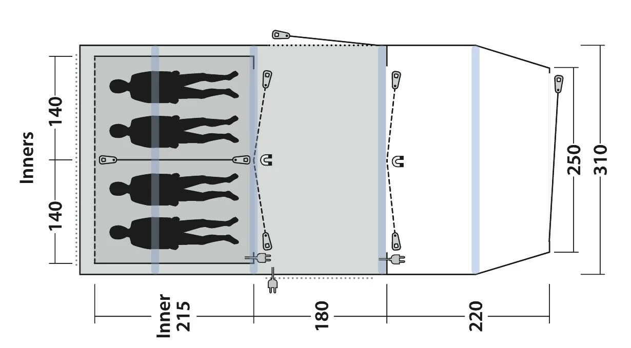 The Outwell Parkdale 4PA Tent (2021) is part of the Prime Air tent collection, offering a three-room, tunnel designed tent, with space to comfortably sleep three people. Pre-shaped internal air tubes offer a greater living space, whilst the new, and brilliant “Quick and Quiet” inners tents offer a superb innovation to the tent internal design. The three-zone system, has an enclosed porch area, a sewn-in living space, and a four-person sleeping inner tent.