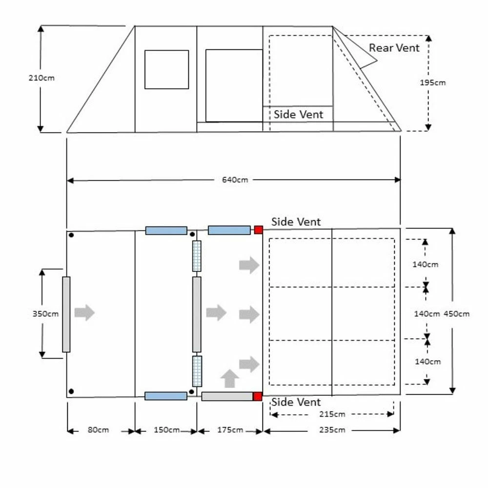 Fully Sewn-in Groundsheet – featuring a fully sewn-in groundsheet throughout the living space and sleeping space. Perfect for stopping cold draughts and the elements from disturbing your holiday.